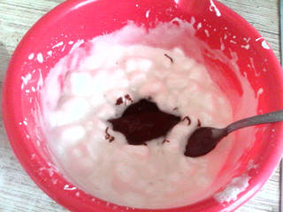 Растопить в микроволновке суфле с молоком, растопить шоколадку, добавить в суфле, добавить заранее набухший и растопленный желатин. Аккуратно перемешать и в форме поставить в холодильник.