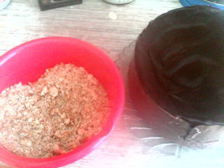 Края торта смазать масляным кремом и бисквитной крошкой. Украсить торт.