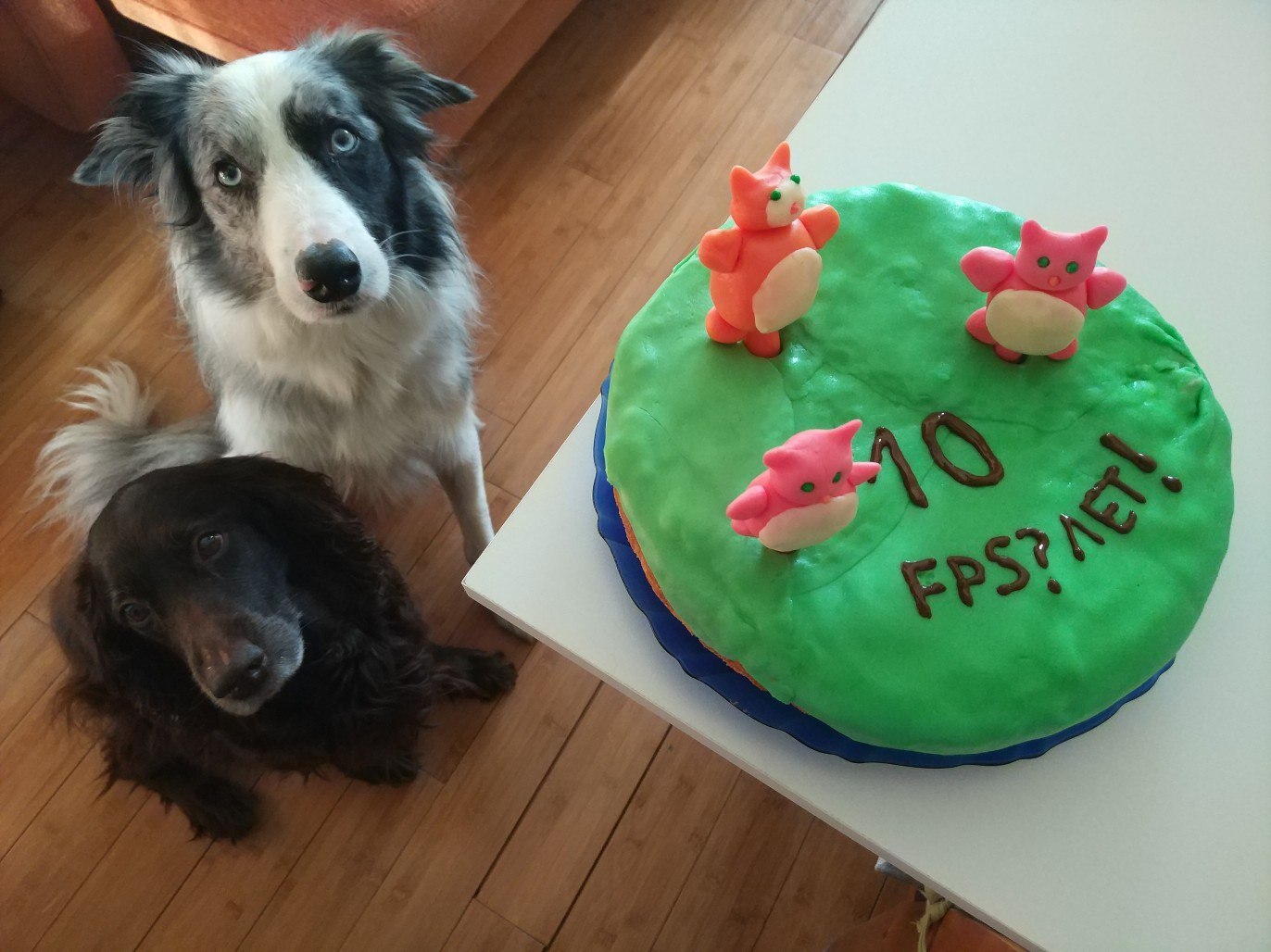 По украшению(деталям): Если остался бисквит(еще не выпеченный-жидкий) можете подкрасить красителем и использовать как травку. Мастика у меня покупная, рецептов приготовления очень много и каждый подбирает лично для себя. АХ да, торт перед покрытием необходимо промазать сливочным маслом или ганашем, чтобы мастика не растаяла - я использую масло, ганаш не всегда подходит к вкусу торта. Картинки - вафельная СЪЕДОБНАЯ печать, печатается на вафельной бумаге в пищевом принтере. Фигурки съедобны, держаться на каркасе и кондитерской проволоке. Сохнут день, иногда больше.(зависит от мастики)