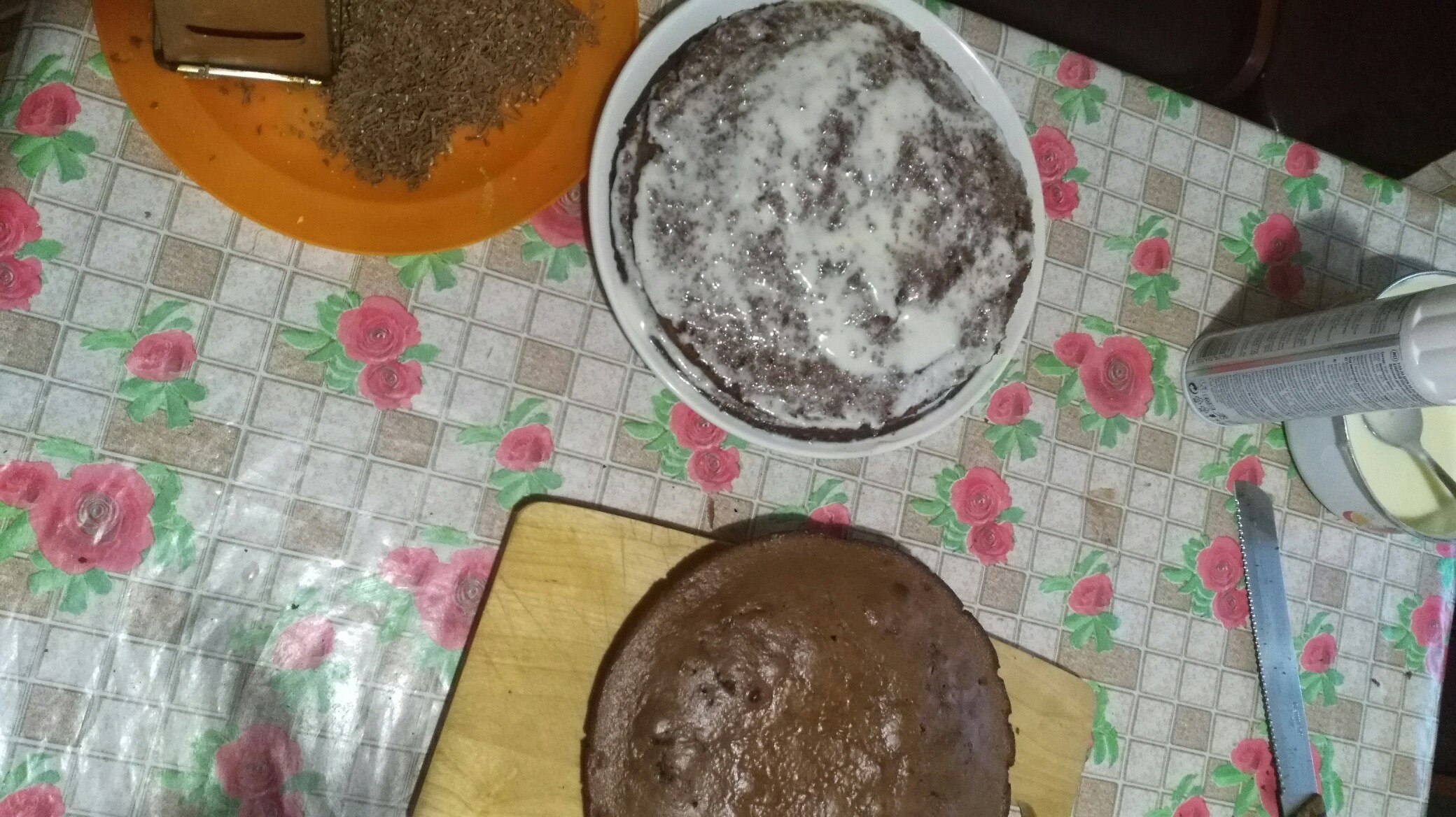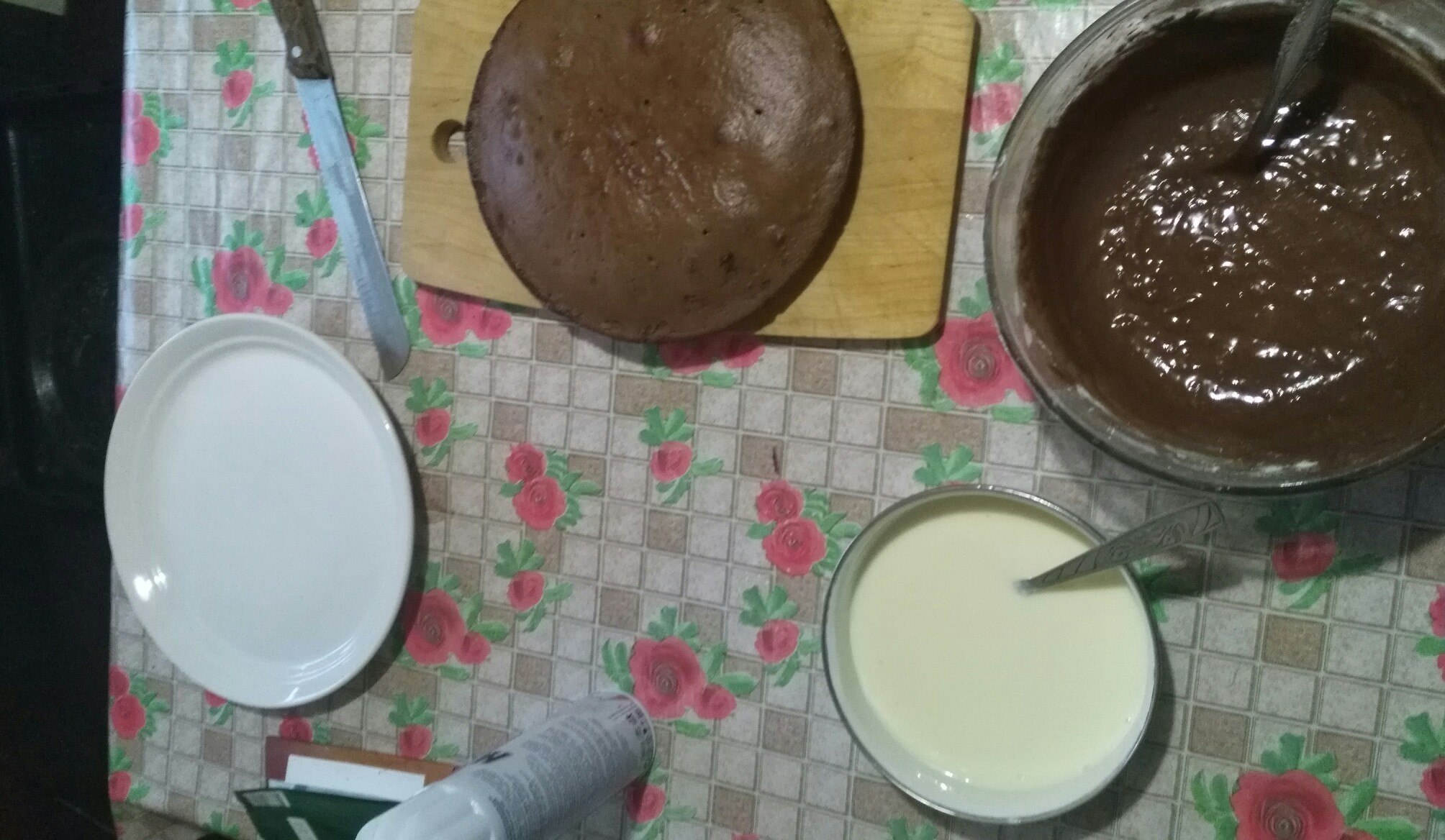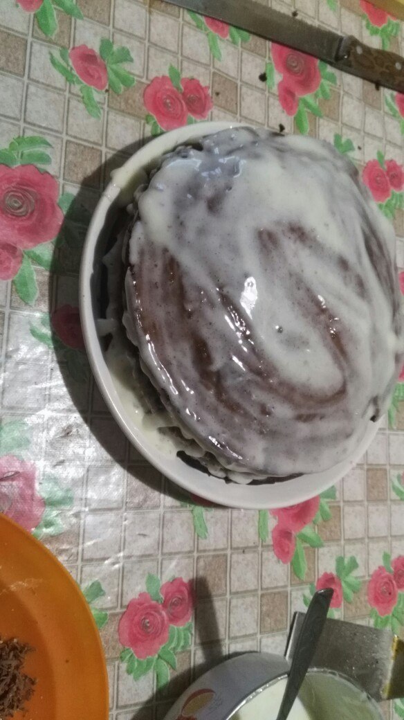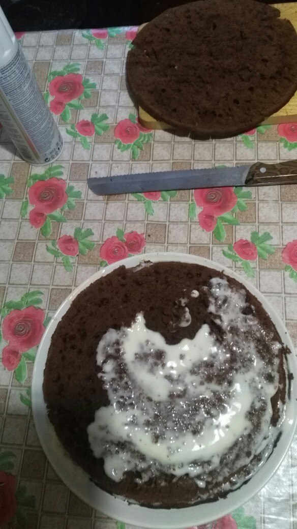 На фото этапы его изготовления, все честно, делал я, даже видно по неаккуратным коржам, но я старался. Все же мои руки заточены под грубую физическую работу, а не для тонкостей.