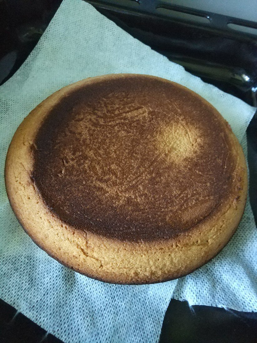 Выпекать бисквит в заранее разогретой до 180°C духовке около 30-35 минут.