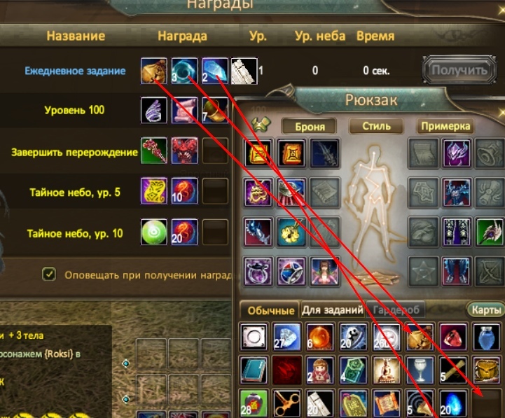 По поводу 1 скрина, там 4 итема (4-ый итем Камень лучей) и для сдачи кв, надо 4 свободные ячейки