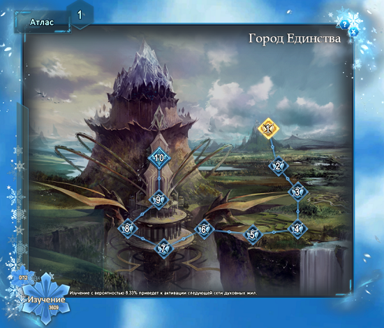Используйте Порошок духов для открытия карт (и одновременно повышения уровня атласа) — нажмите на большую кнопку «Изучение» в левой части окна. Когда карта разблокируется, кликните по ромбику с ее номером и перейдите к сети духовных жил. Для движения по сети также нужен Порошок духов. Направление выбирается случайным образом, но вы можете повлиять на него с помощью специальных предметов. Когда достигнете любой точки, атлас запомнит ее.