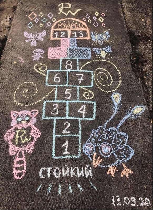 Напишите, пожалуйста, сколько потратили мелков и времени на создание работы. Создавали свою работу в компании друзей, семьи или одиночестве? Всё ли задуманное получилось реализовать в своей работе?