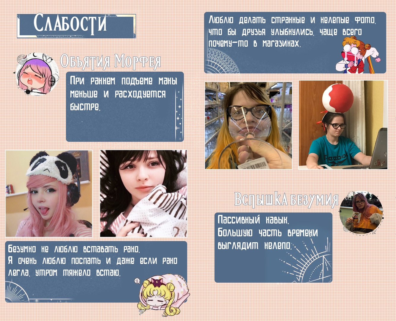 3. В жизни очень люблю путешествовать. Объездила половину стран. Самое нелюбимое для меня занятие - мытье посуды (горькая правда).