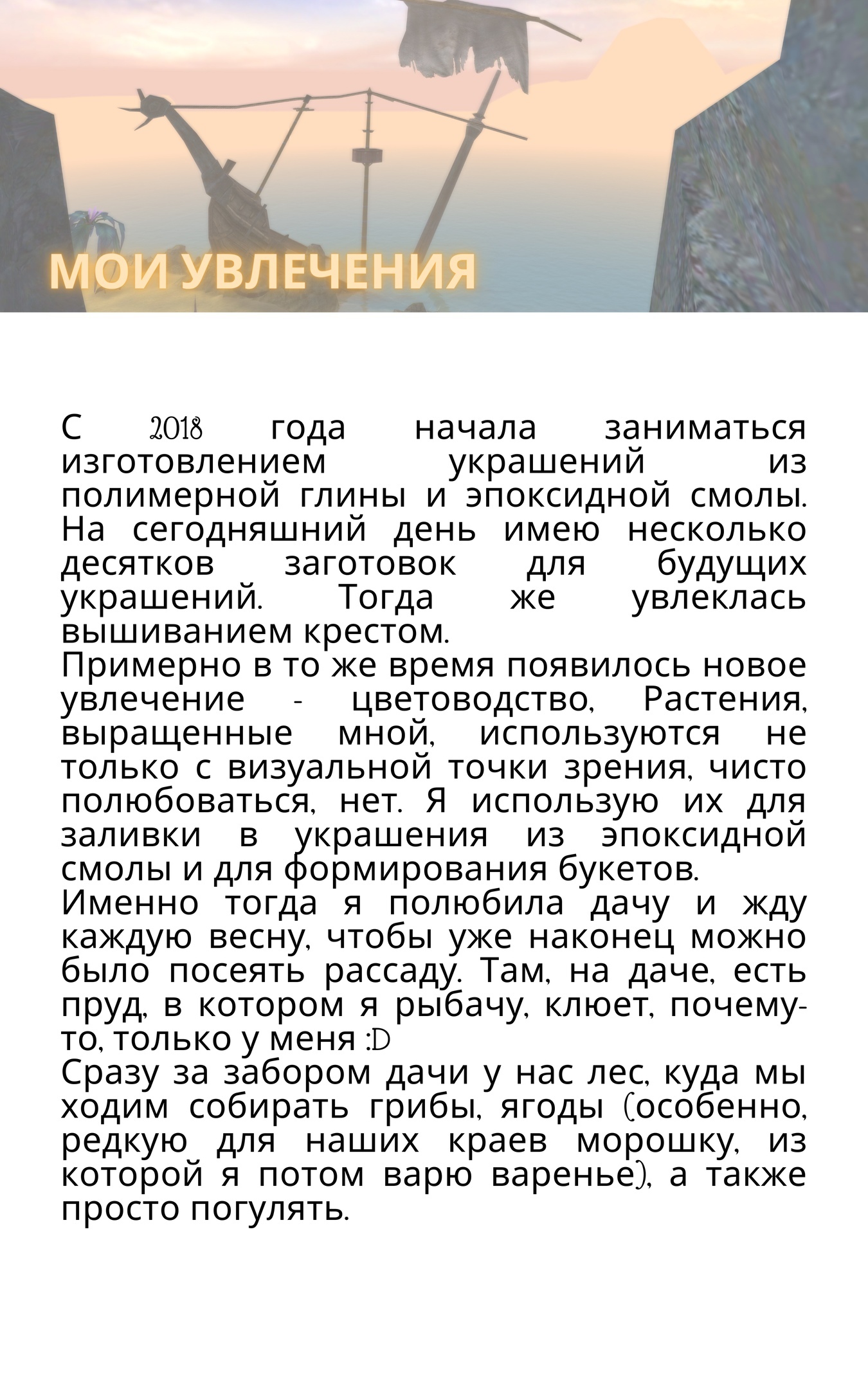 - Чем вы увлекаетесь в реальной жизни, а что делаете неохотно?