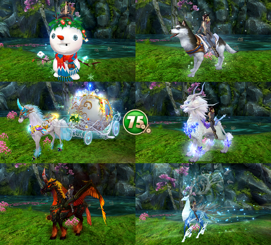 - ездовые питомцы — Снеговик, Хаски, Карета-тыква, Серебристый дракон, Пылающий аликорн и Волшебный олень;