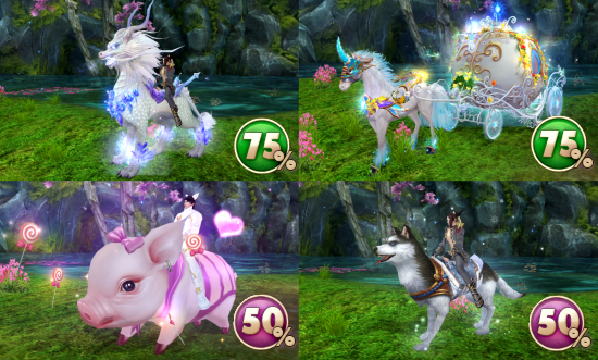 • ездовые питомцы — Серебристый дракон, Карета-тыква, Гламурная хрюшка и Сибирский хаски;
