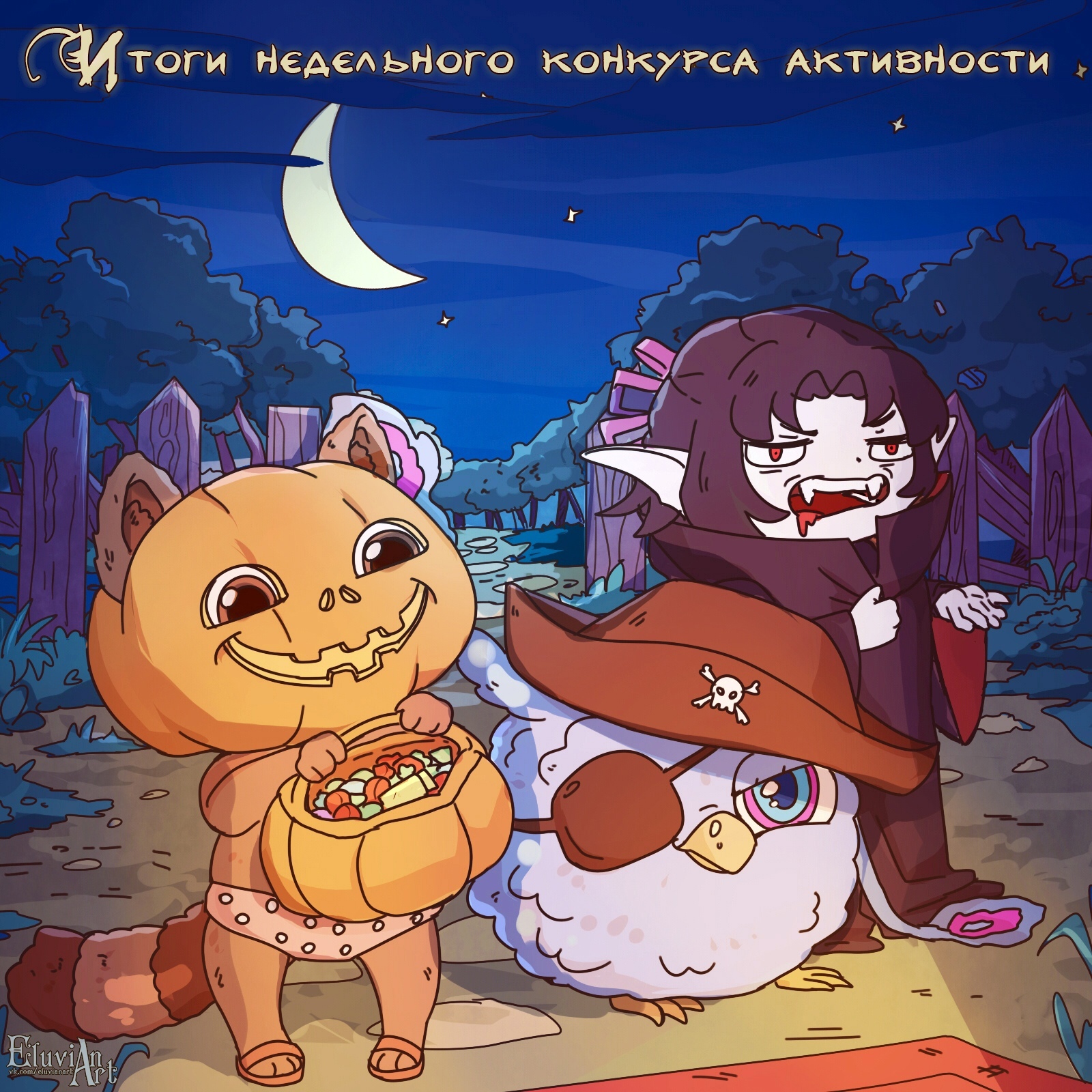 - нарисуйте арт для итогов еженедельного конкурса активности в сообществе «ВКонтакте»;