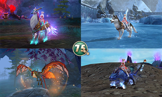 - ездовые питомцы — Крылатый ящер, Сибирский хаски, Громовой ящер, Мистический олень;