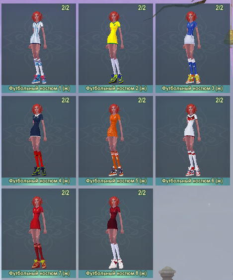 Модный дом VEI SYAOBAO FASHION с интересом наблюдал за активностью героев, когда на прилавках появлялась спортивная одежда. Как будто зачарованные, они принимались чаще гулять и играть на свежем воздухе. Чтобы поддержать полезные начинания храбрых воителей, глава этого магазина приказал вновь вернуть в продажу по 8 комплектов женской и мужской футбольной формы, которые уже совсем скоро станут доступны в игровом магазине.