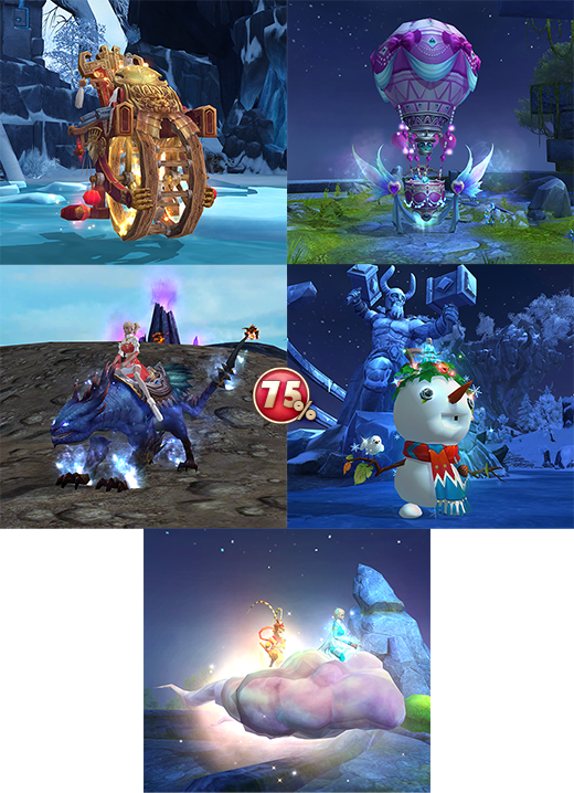 - ездовые питомцы — Волшебное облако, Розовый воздушный шар, Снеговик, Громовой ящер и Коляска Шао Хао;