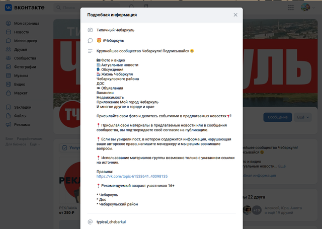 Уважаемая администрация игры! Предлагаю к новогодним праздникам и каникулам провести широкомасштабную таргетированную рекламу игры Perfect World в крупнейшем отечественном мессенджере Вконтакте с участием наших игроков. Этот метод рекламы привлечёт в новогодние праздники/каникулы большое количество новых игроков из многочисленных городов нашей страны. Как это будет выглядеть?! Здесь потребуется помощь наших игроков, которые будут размещать в этой теме скриншоты с ссылкой на официальную группу ВК своего города (потому как размещение ссылок на сторонние ресурсы на форуме запрещено, будут именно скриншоты адресов). В России великое множество официальных групп в каждом городе страны, такие как "Типичный Челябинск", "Типичный Краснодар" или "Типичная Москва".