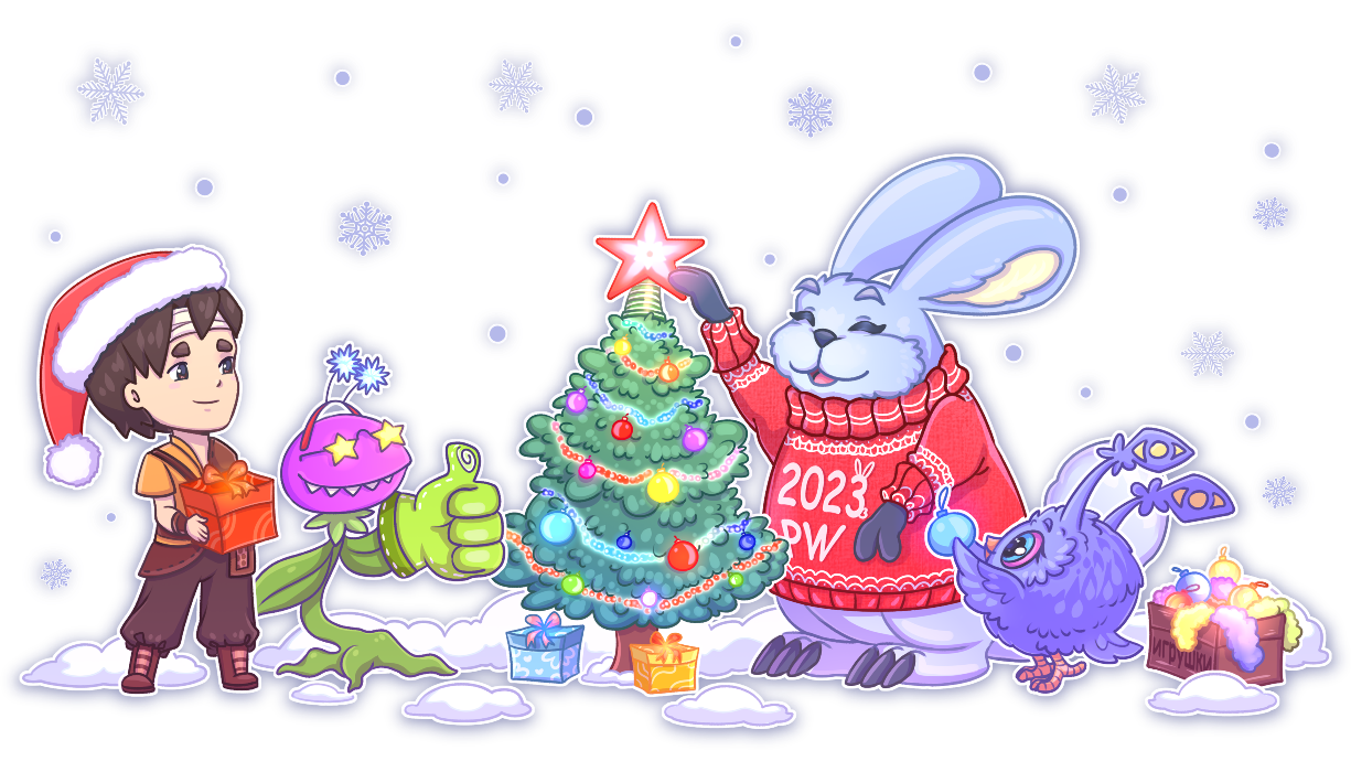 С Новым годом, друзья!Мы — команда Perfect World, Вэй Сяобао, Птица Бобо, Кристина и енотики, поздравляем вас с праздником! Желаем здоровья, благополучия, радости, целеустремленности и счастья! Пусть фортуна балует вас почаще, друзья зовут в подземелья, как только вы появитесь в сети, а клан поддерживает во всех начинаниях. Пусть сражения на PvP-событиях будут интересными, а механики боссов легко поддаются изучению. Желаем вам любви, силы и достатка! С Новым годом!