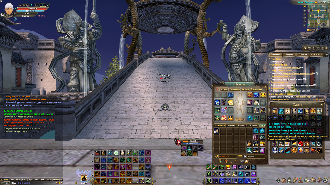 Т.е. когда входишь в игру второй раз, руны уже в инвентаре нет, а задание нельзя выполнить.