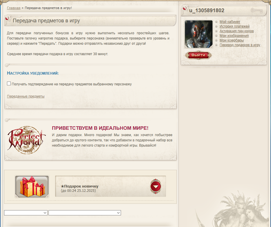 Но на сайте не пришли подарки. Надо перса создать или что надо?