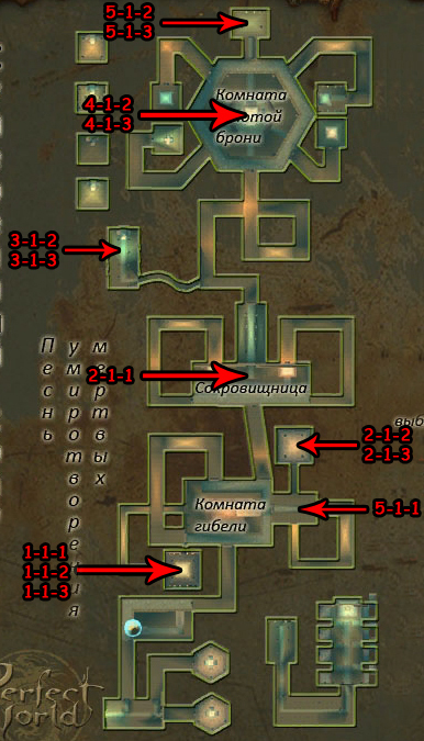 2)После выбора в первой стеле режима, она исчезнет и появится вторая. Тут надо выбрать один из трех предложенных типов сложности: рыцарь (60-65), Защитник (68-73), Храбрец (76-81), смотрим табличку, ищем рес который вас интересует, смотрим какой это тип сложности, и открываем.
