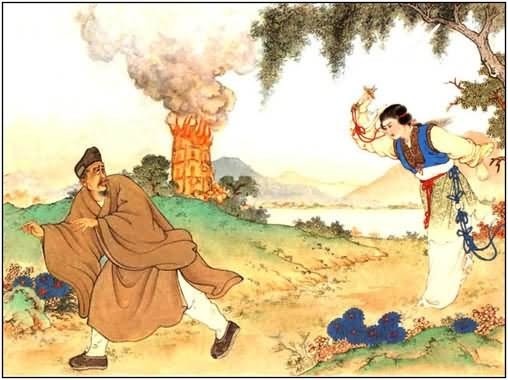 А Шань-бо так надеялся, так мечтал о встрече. Все напрасно. Потерял юноша терпение, рассердился, про все забыл, даже про то, что «три раза по семь — двадцать один»: не до приличий ему, поднял он шум, всю посуду перебил, которая в зале была.